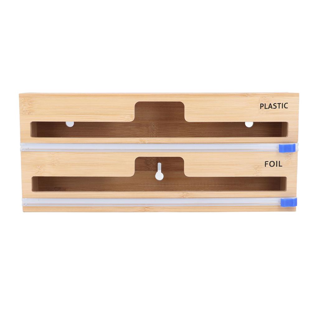 Plastic Wrap Dispenser Natural Bamboo Food Grade Easy Operation Durable Aluminum Foil Dispenser
