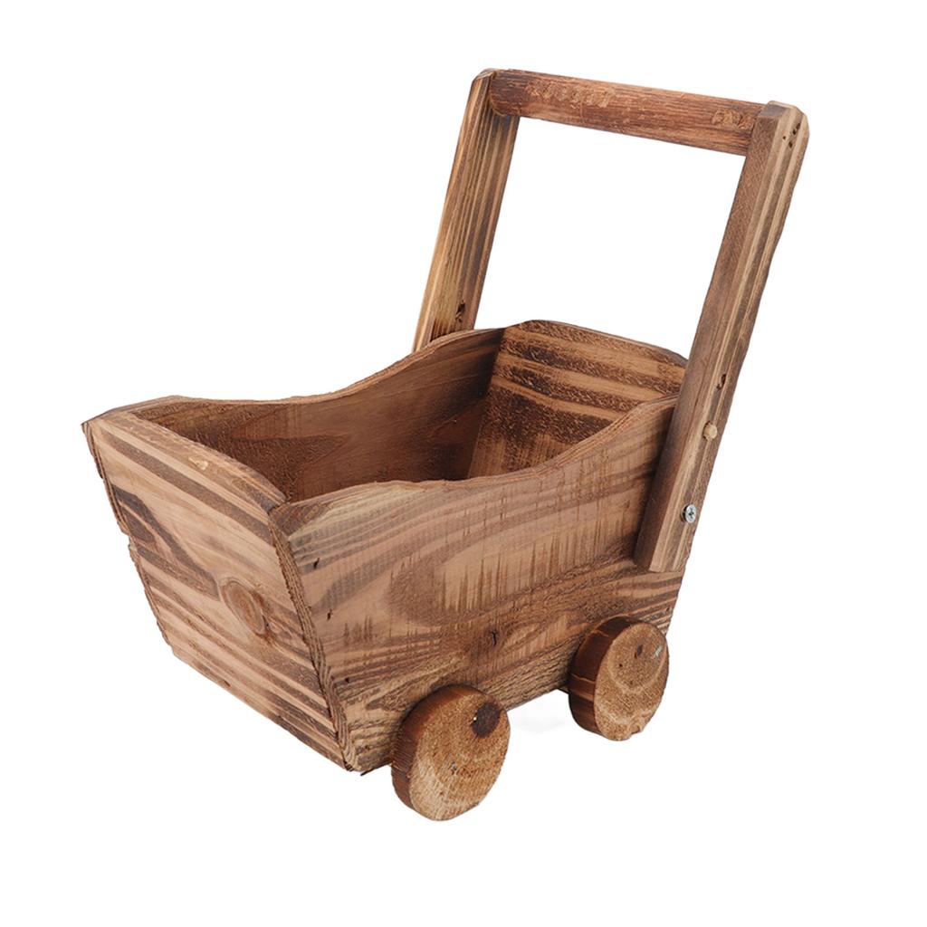 Flower Pot Wooden Cart Sturdy Durable Wooden Wheelbarrow Design Multifunction Indoor Plant Stand