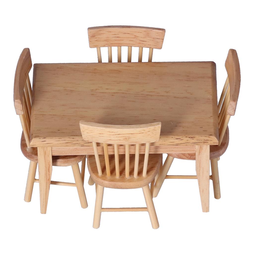 Dollhouse Furniture 1 Table 4 Chairs Wooden 1:12 Miniature Furniture for Children Toys Decoration