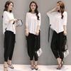 Women's Summer Design Elegant Loose Set Irregular Top + Carrot Pants Two Piece Set