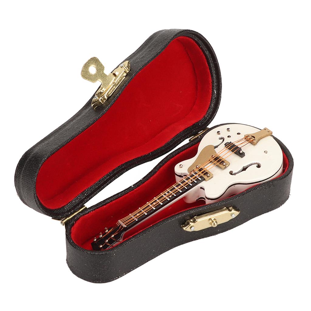 Guitar Brooch Pin White Hollow Stylish Style Wood Velvet Case Decorative with Safety Clasp Mini