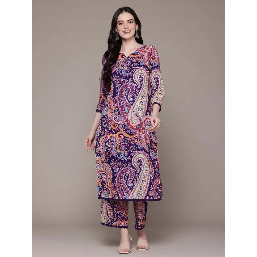 Women Designer Top Tunic Kurta Pant Set Indian Party Wear Pure Cotton Kurti 2368