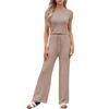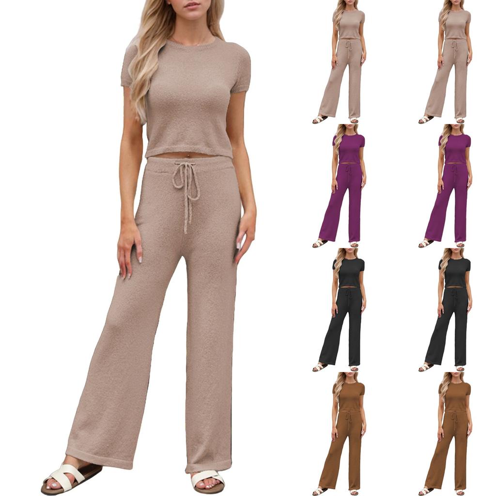 Women's Fashion Vacation Beach Round Neck Casual Loose Short Sleeve Pants Suit