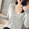 Women's V-neck Knitted Cardigan - Long-Sleeve All-Season Outerwear Sweater