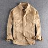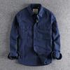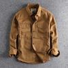 Autumn Vintage Washed Solid Color Workwear Shirt with Men's Three-dimensional Pockets, Trendy Loose Jacket
