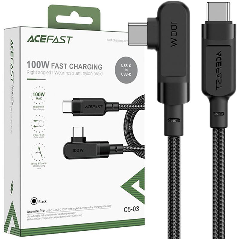 Kabel Acefast C5-03 Black Usb-C - Usb-C Pd Qc 100W 5A 480Mb/S 2M - Czarny