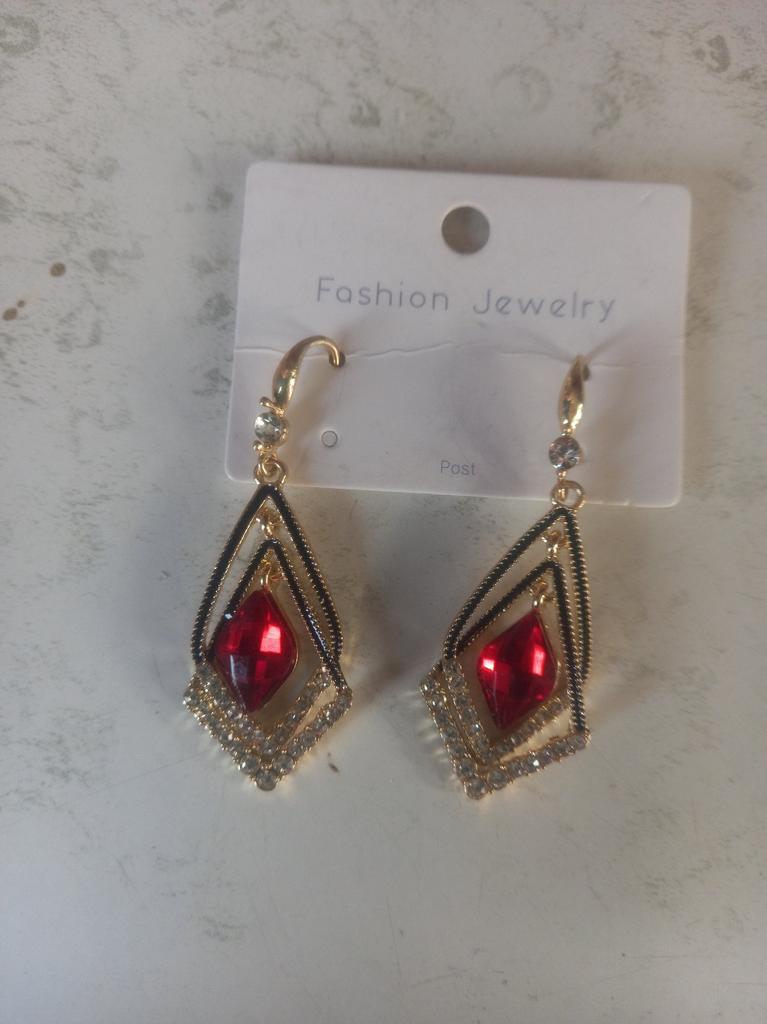2024 Women's Red Crystal Double-Layer Geometric Diamond Earrings – Trendy Korean Design