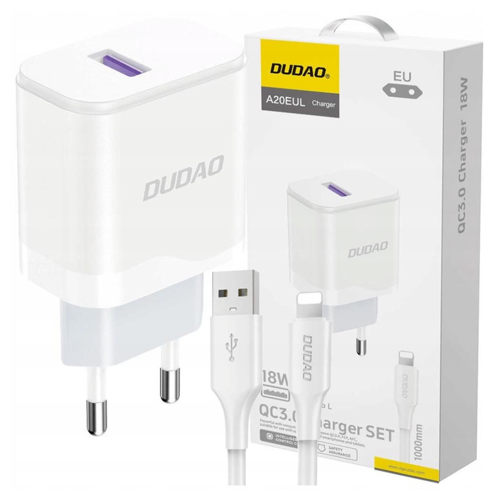 Ładowarka sieciowa Dudao A20EU ze złączem USB-A o maksymalnej mocy 18W + kabel USB-A - Lightning - biała
