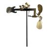 Industrial Steampunk Design: Embrace a unique blend of rustic metal craftsmanship and musical artistry with this windmill featuring a guitar-shaped arrow and vintage steampunk style for an eye-catching outdoor accent.