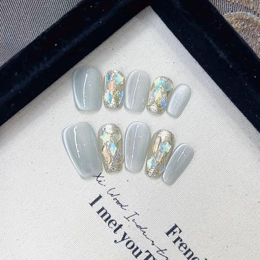 Pure Hand-made Phototherapy Wear Nail Tablets Green Milk Lift Green Wear Nail Finished Product Reusable Nail Patches