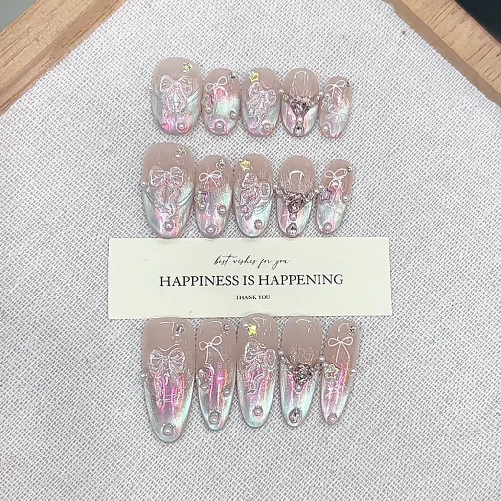 Pure Hand-wearing Argentina Summer New Aurora Bow Zircon Temperament Cat Eye Nail Art Patch