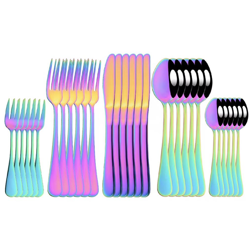 6/30Pcs Rainbow Dinnerware Stainless Steel Cutlery Set Knife Cake Fork Tea Spoon Flatware Set Kitchen Silverware Tableware Set