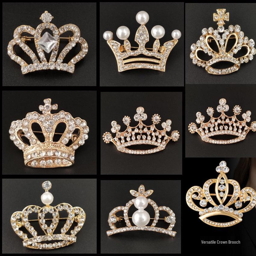 Korean Alloy Rhinestone Crown Brooch for Professional Wear