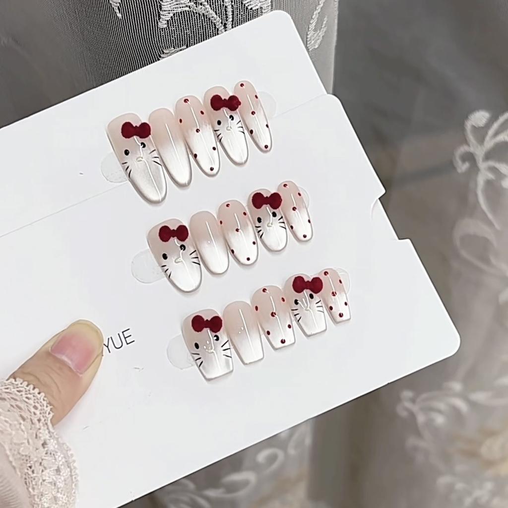 Pure Hand-made Phototherapy Wearable Nails Velvet KT Cat Wearable Nails Finished Product Reusable Nail Art