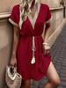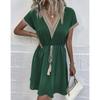 Spring/Summer Solid Color Lace V-Neck Dress with Short Sleeves
