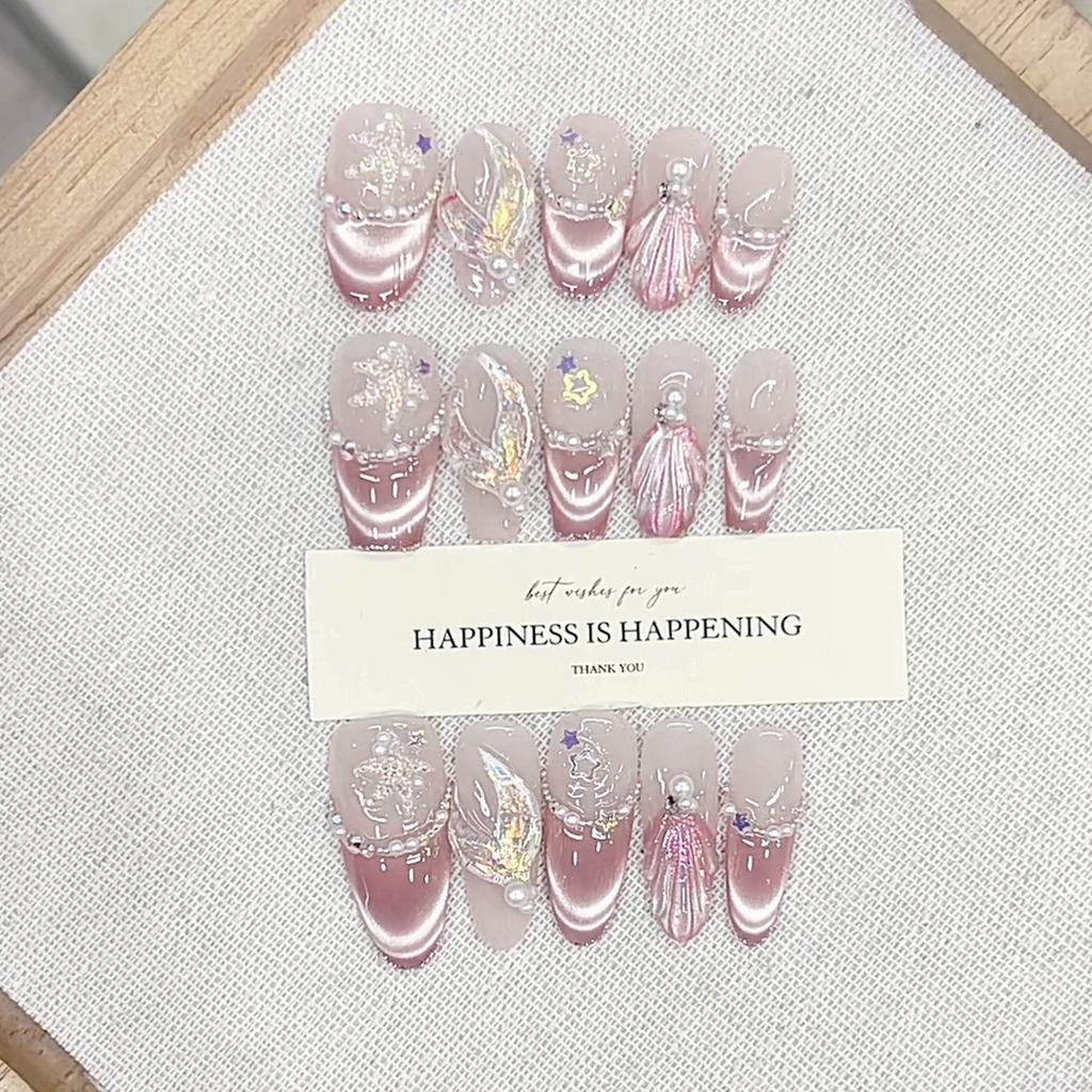 Pure Hand-pinching Craftsmanship In Summer Star Sea Mermaid Three-dimensional Hand-painted Colorful Fish Tail Cat Eye Nail Art Patch