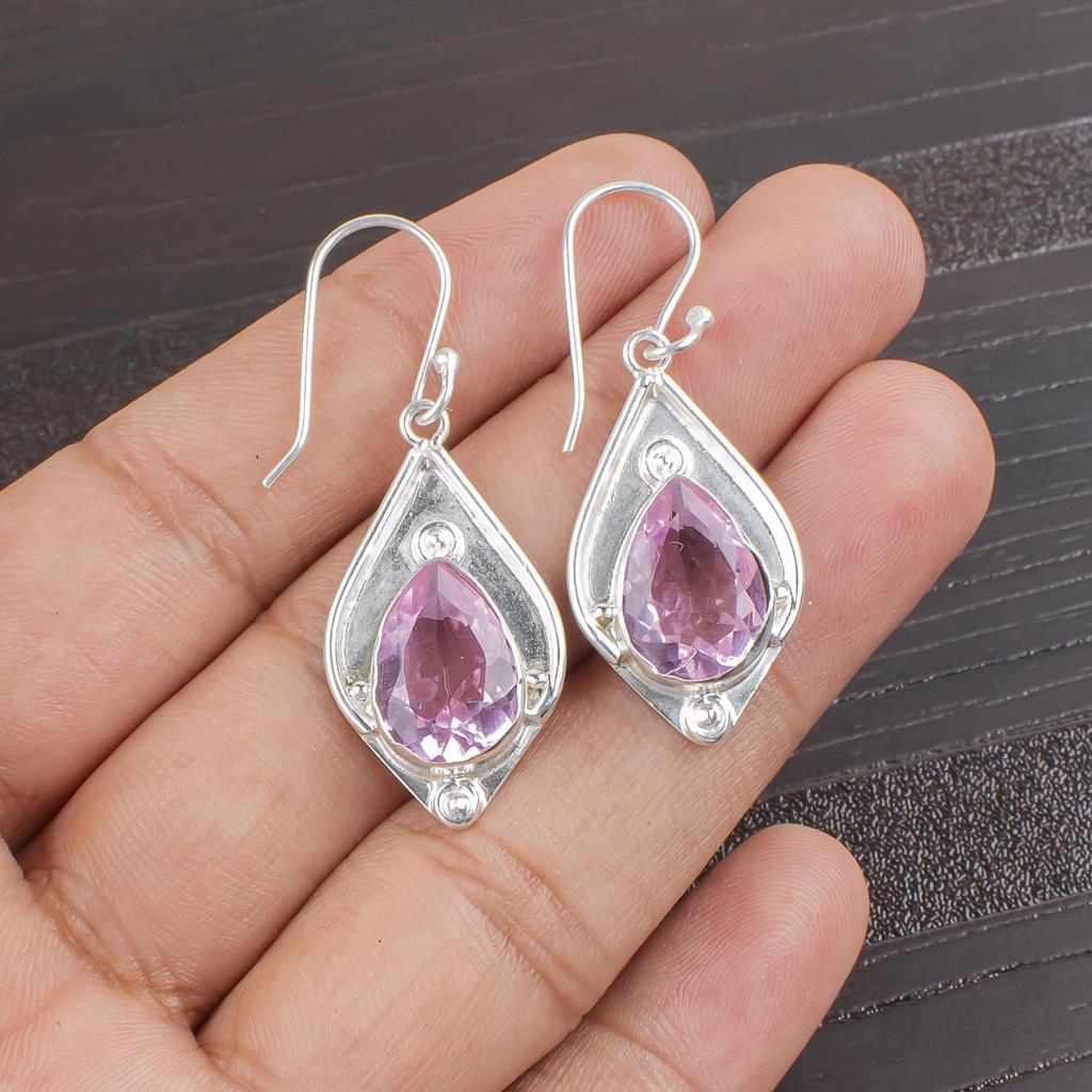 Morganite Earrings, Handmade Gemstone 925 Solid Sterling Silver Earrings Antique Jewelry, For Engagement Gift