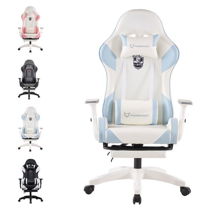 FOXSPORT-fauteuil gaming-Chaise De Jeu ergonomique-Avec repose-pieds-Réglable En hauteur-Chevalier De La Lune-charge 200KG-Bleu