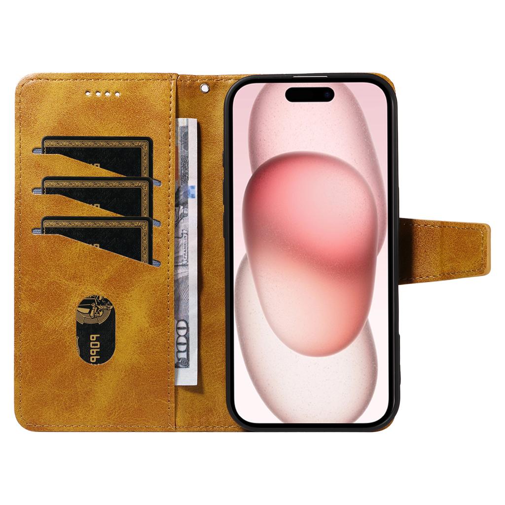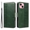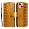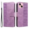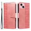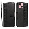 For iPhone 15 Leather Case Wallet Stand Grids Imprinted Phone Cover with Strap