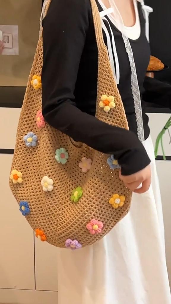Yogodlns Summer Commuting Woven Bag for Women Single Armpit Bag, Fashion Large Capacity Tote Bag, Beach Floral Hollow Handbag Shoulder Bag