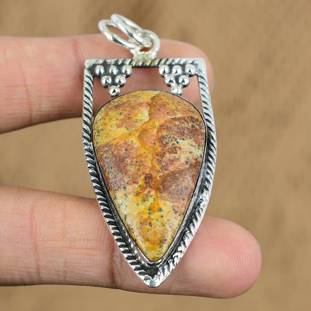 Anniversary Gift For Her Natural Picture Jasper Gemstone Pendant 925 Silver