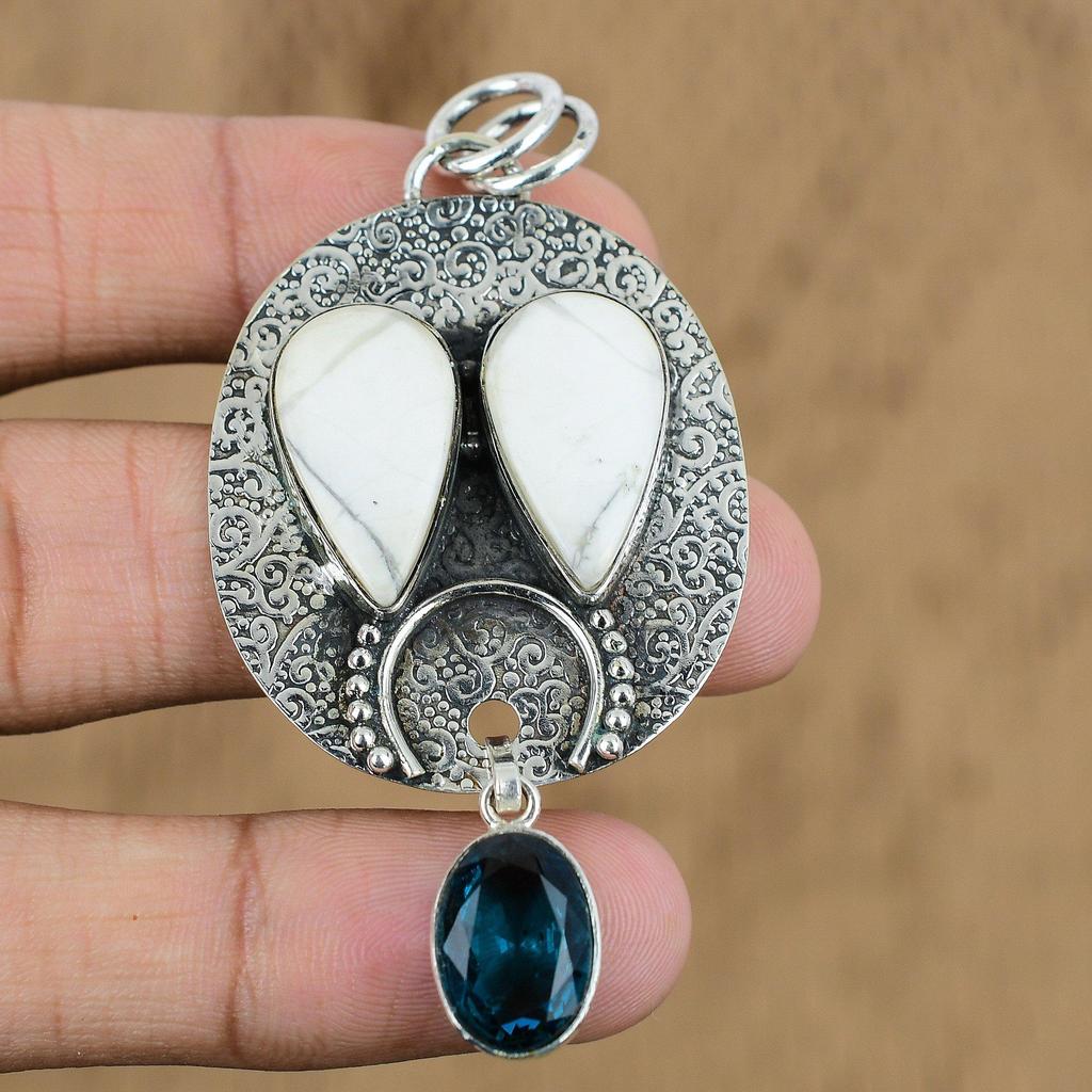 Wedding Gift For Her 925 Sterling Silver Natural Howlite Gemstone Pendant