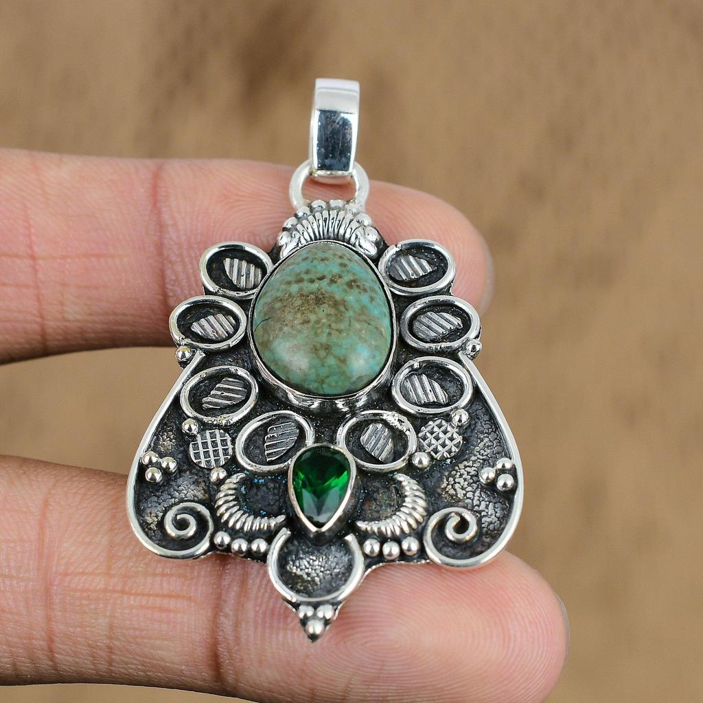 Natural Tibetan Turquoise Gemstone Pendant 925 Sterling Silver Jewelry For Girls