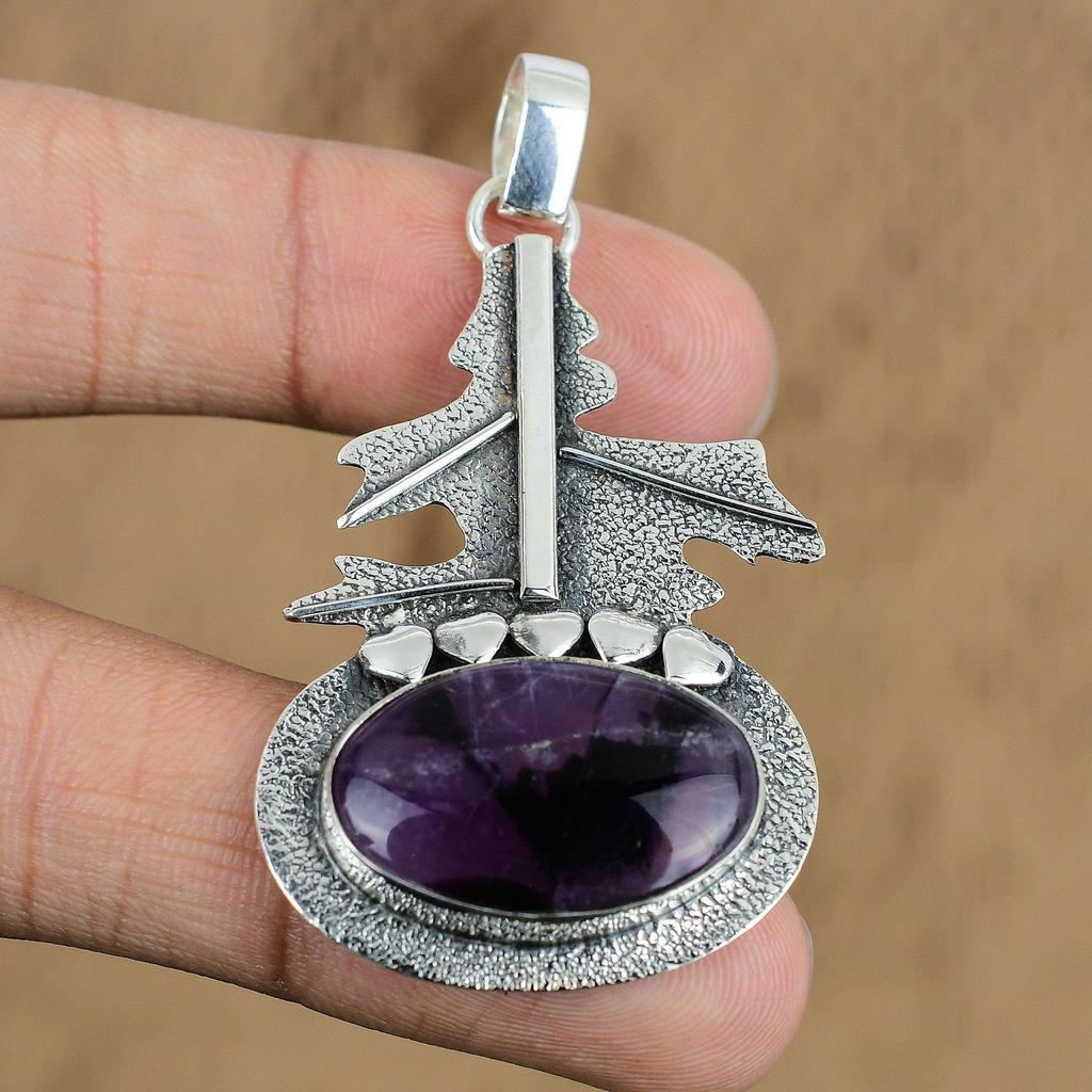 Birthday Gift For Her Natural Star Amethyst Gemstone Pendant 925 Sterling Silver