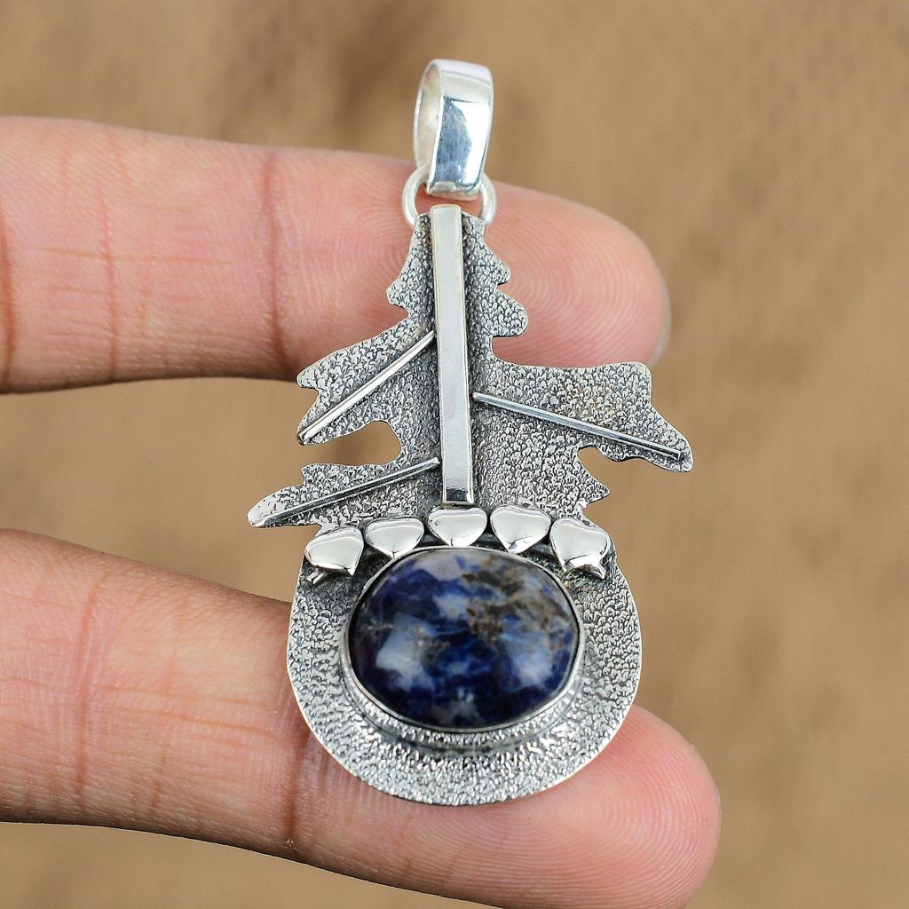 Birthday Gift For Her Natural Sodalite Gemstone Pendant 925 Sterling Silver