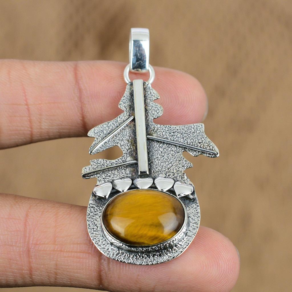 Natural Tiger'S Eye Gemstone Pendant Handmade 925 Sterling Silver Indian Jewelry