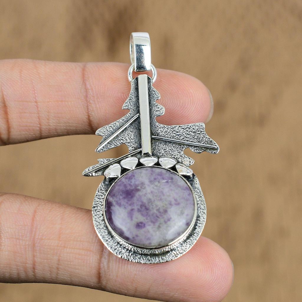Natural Lepidolite Gemstone Pendant 925 Sterling Silver Indian Jewelry For Women