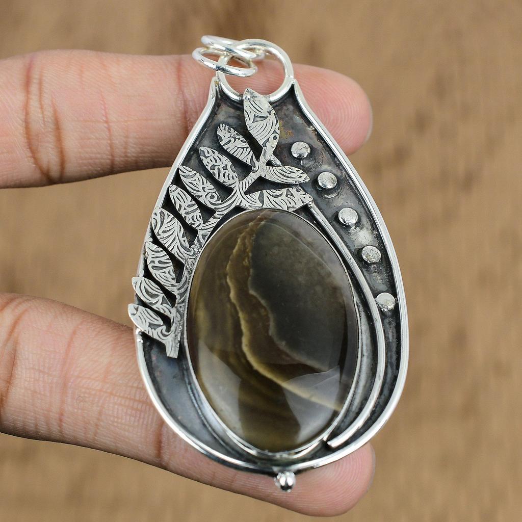 Gift For Her 925 Sterling Silver Natural Polychrome Jasper Gemstone Pendant