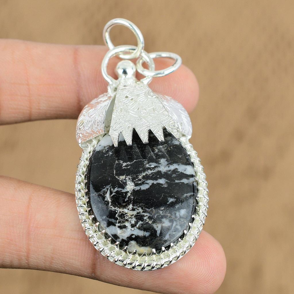 Anniversary Gift For Her Natural Zebra Jasper Gemstone Pendant 925 Silver