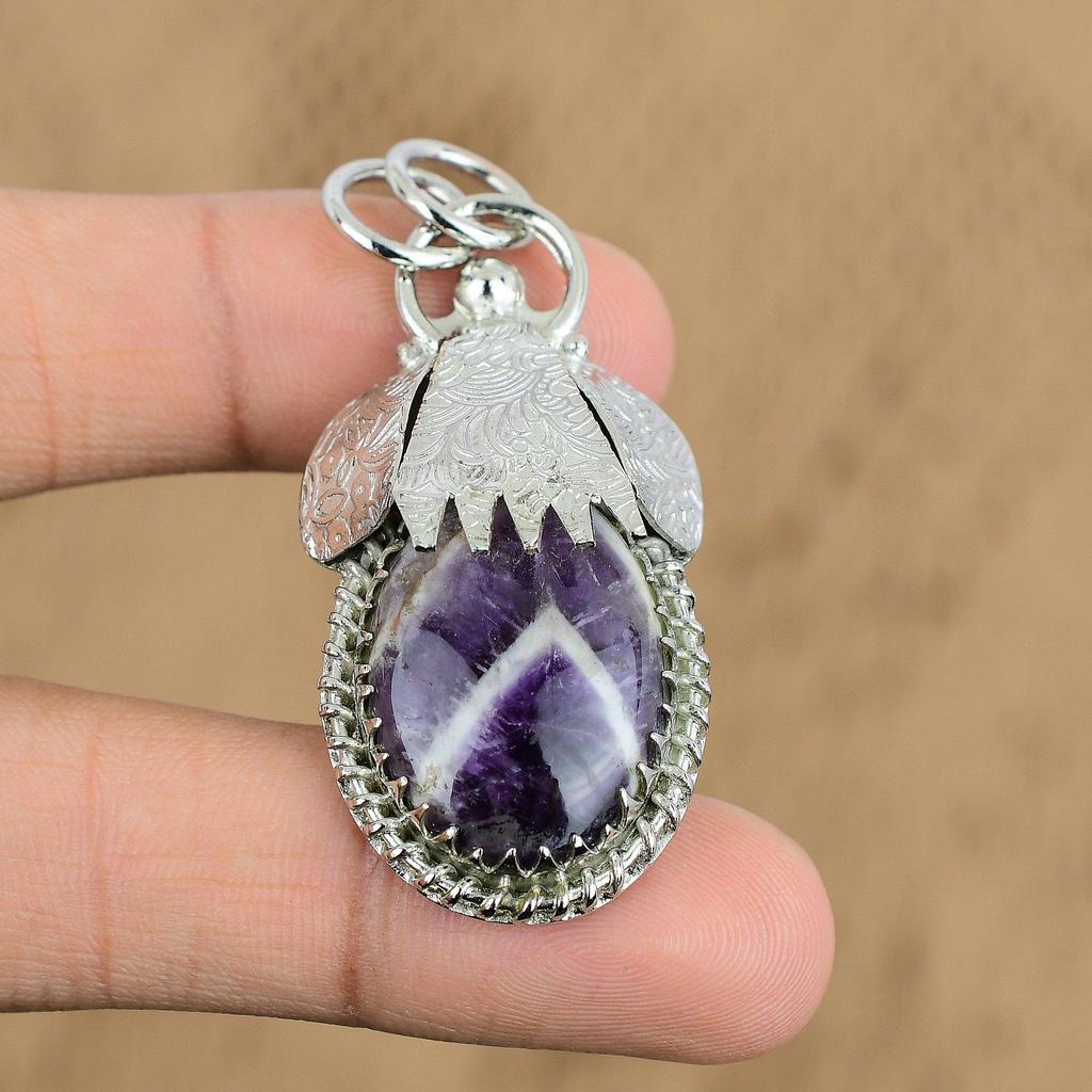 Wedding Gift For Her 925 Silver Natural Chevron Amethyst Gemstone Pendant