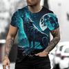 Summer Round Neck 3D Wolf Print Top Fashionable Casual Short Sleeved Men's T-shirts