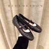 Missy~ Temperament Soft Leather Rhombus Pearl Buckle with Flat Sole Shoes Women's Mary Jane Shoes