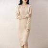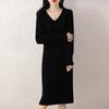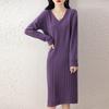Pure Wool Strip V-neck Mid-length Dress for Women In Autumn and Winter New Fashionable and Versatile Age-reducing Slimming Over-knee Skirt