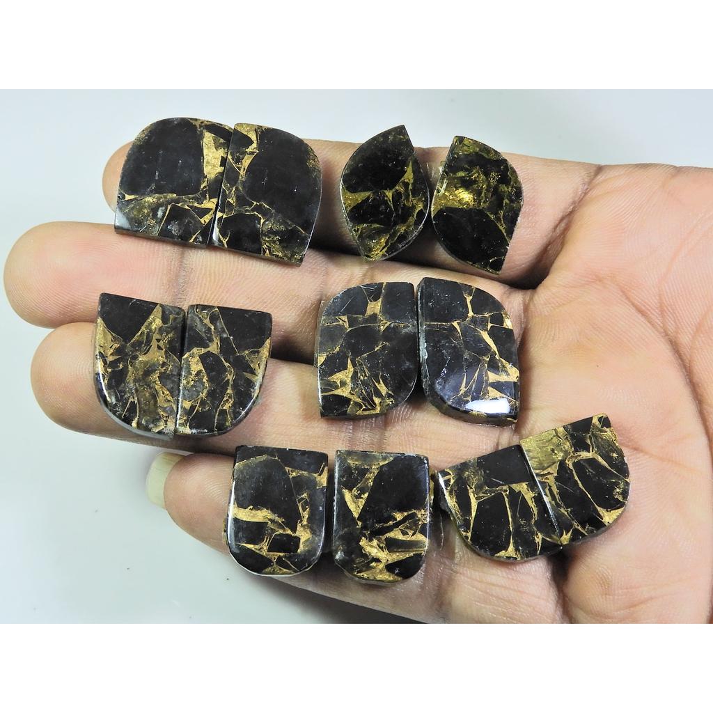101Cts. Natural Black Copper Tourquise Fancy Cabochon Matched Pair 6Pair Lot A-146