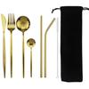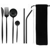 8Pcs/set Tableware Reusable Travel Cutlery Set Camp Utensils Set with Stainless Steel Spoon Fork Chopsticks Straw Portable Case