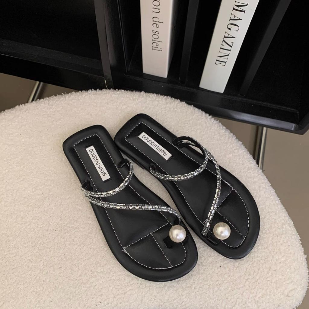 Flat-bottomed Set of Toe Small Cool Slippers Shoes New Summer Soft-soled with Skirt Rhinestone Sandals