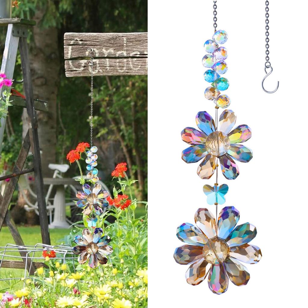 Sparkling Crystal Double Flower Sunflower Suncatcher Balcony Sunbeam Reflector For Indoors And Outdoors Decoration