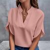 Spring And Summer V-neck Solid Color Casual Versatile Short-sleeved Pullover Shirt