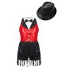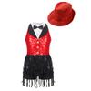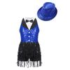 Girls Sequin Jumpsuit Dance Set Sleeveless Round Neck Keyhole Back with Hat Jazz Performance Competition Outfit