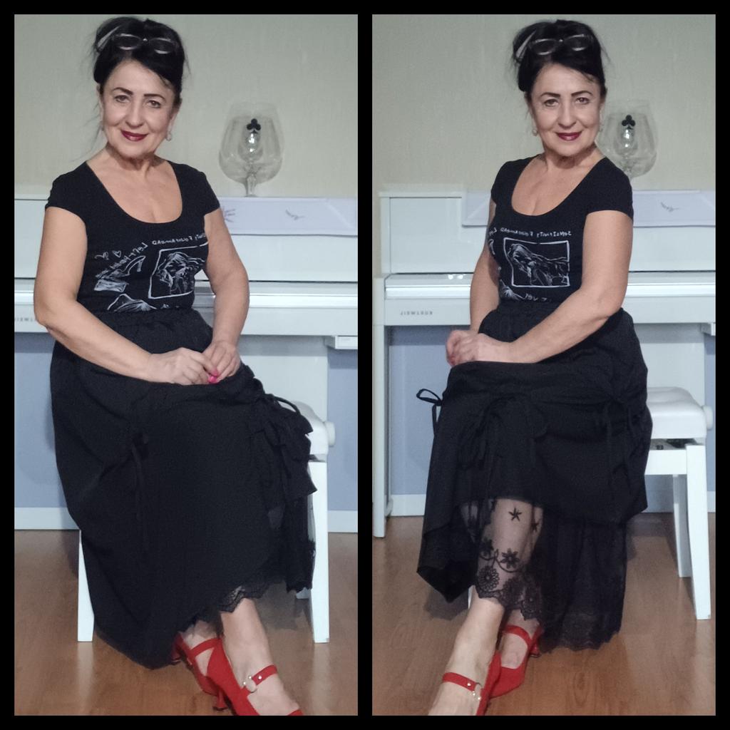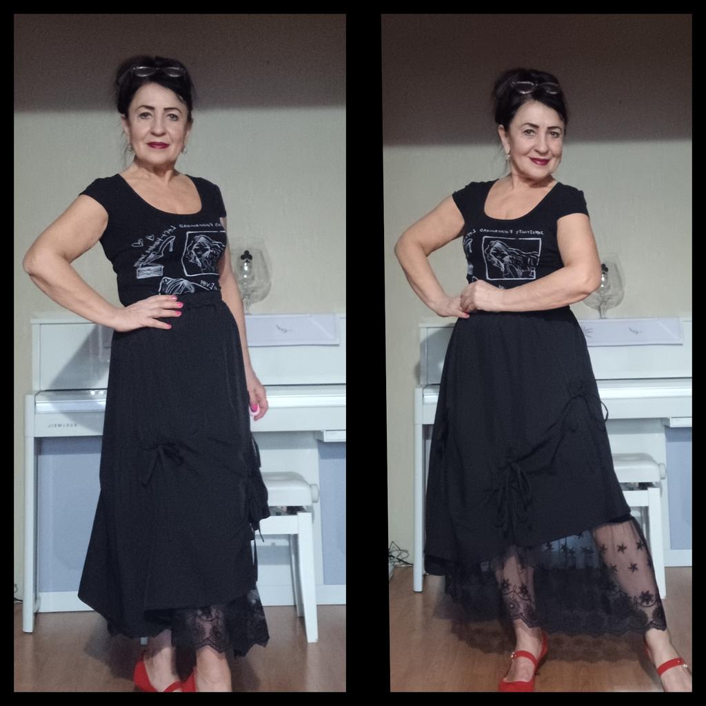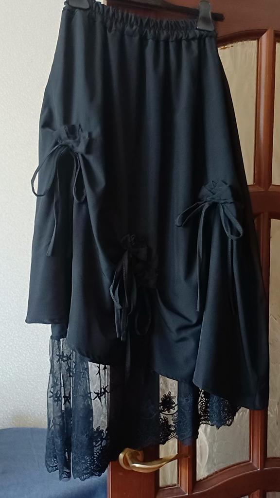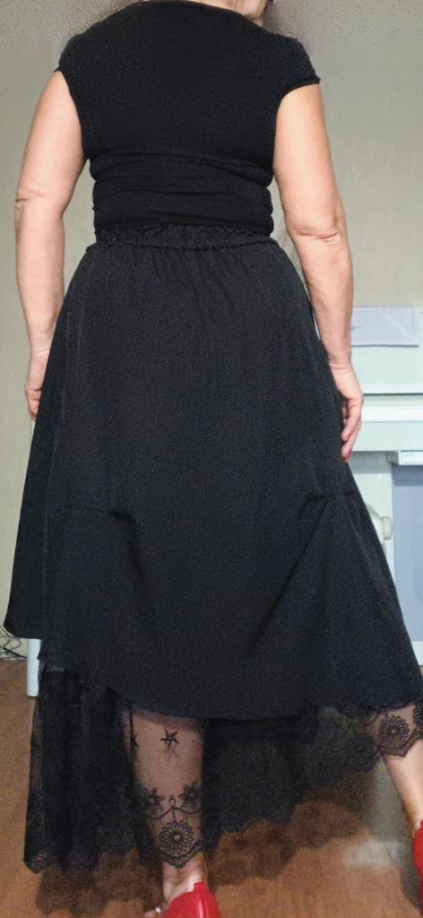 Women's Dull Black Long Dress High Waisted Bow Spliced Lace A Line Mid Length Skirt Fashion