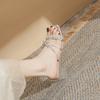 New Square Head Open-toed Middle Heel Fairy Style Temperament with Rhinestone Bow Crystal Heel Cool Slippers Female Muller Shoes