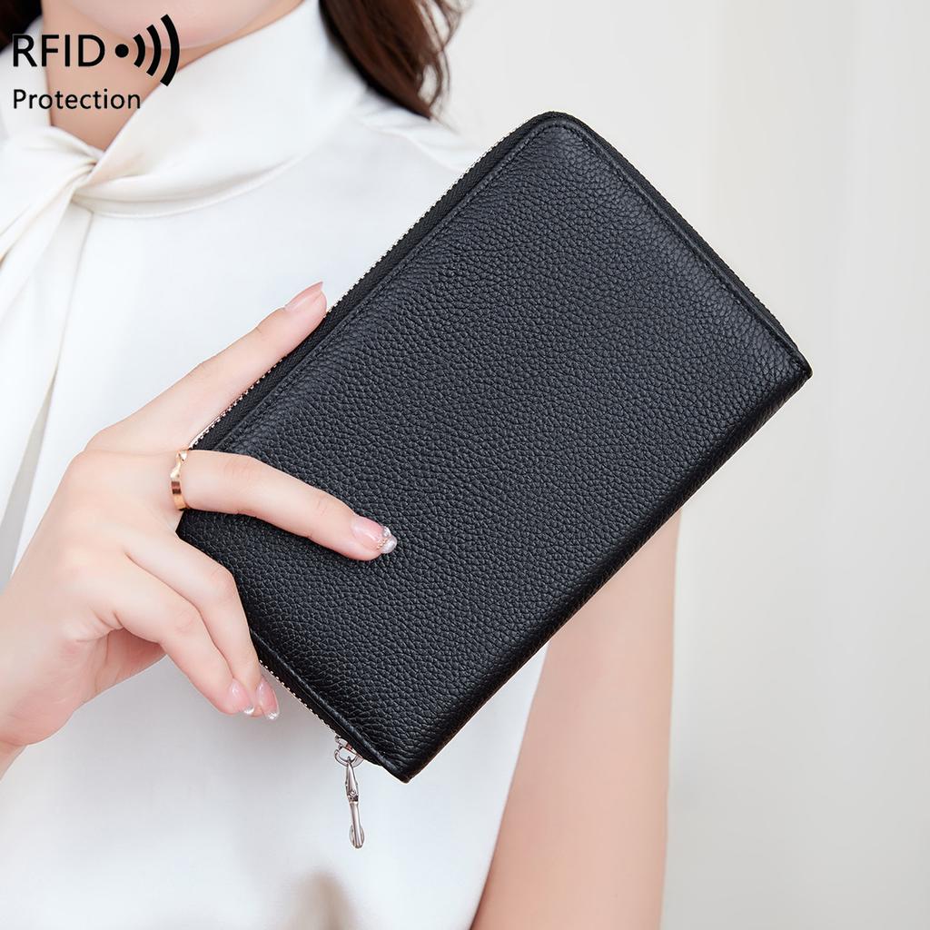 Type Multi-functional Leather Pass Book First Layer Cowhide Zipper Hand Book RIFD Passbook Passport Wallet