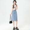 High-waist Denim Skirt for Women In Spring and Summer New Versatile Slim and Slit Straight Hip Skirt A-line Mid-length Skirt