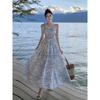 Retro Off-shoulder Suspender Dress for Women In Summer Sexy Backless Seaside Vacation Long Skirt