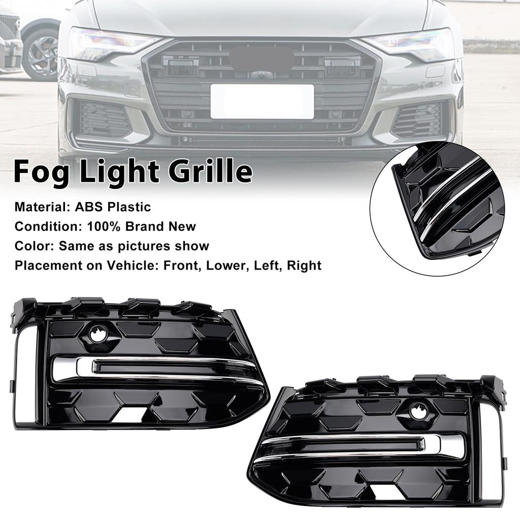 2PCS Front Bumper Fog Light Grille Trim Fit A6L C8PA 2023+ Black Chrome