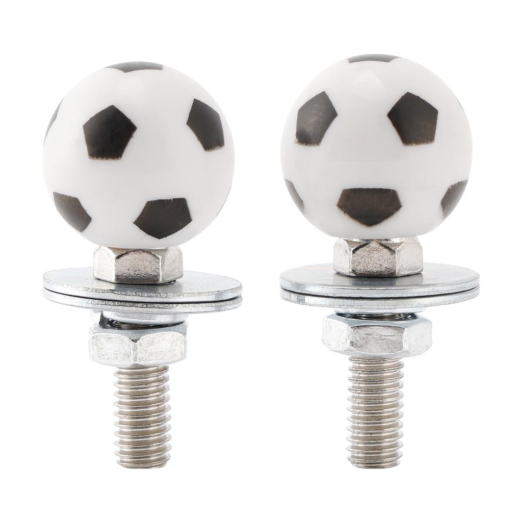 Bolts with soccer design for mounting on license plates.